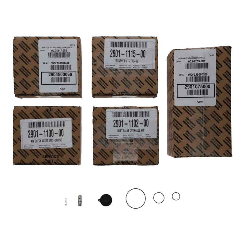 Atlas Copco 2901112100, एअर कॉम्प्रेसर मेंटेनन्स किट हे एक प्रमाणित स्पेअर पार्ट्स संयोजन आहे जे सामान्य देखभाल परिस्थितींसाठी डिझाइन केलेले आहे. हे एका टूलकिटमध्ये देखभालीसाठी आवश्यक असलेले मुख्य घटक एकत्रित करते. या एकात्मिक डिझाइनमुळे देखभाल कर्मचाऱ्यांना स्वतंत्रपणे भाग शोधण्याचा आणि जुळवण्याचा त्रास दूर होतो. विशेषत: स्क्रू-टाइप एअर कंप्रेसर आणि ऑइल-फ्री एअर कंप्रेसर यासारख्या जटिल उपकरणांसाठी, ते देखभाल तयारीची वेळ लक्षणीयरीत्या कमी करते आणि देखभाल कार्यक्षमता सुधारते. मेंटेनन्स किटमधील स्पेअर पार्ट्स हे मूळ कारखान्यातील सर्व अस्सल उत्पादने आहेत किंवा जे उपकरणाच्या वैशिष्ट्यांची पूर्तता करतात. त्यांनी कठोर चाचणी आणि प्रमाणपत्र घेतले आहे आणि ते एअर कॉम्प्रेसरच्या मूळ घटकांशी पूर्णपणे जुळू शकतात.